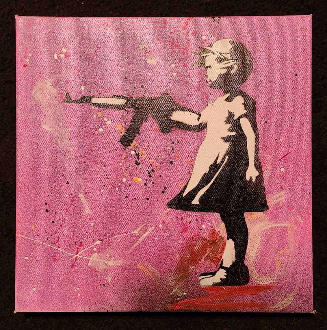 'Balloon Recovery'. Banksy Hates Me. 2024. 12x12" gallery stretched deep canvas. One of a kind artwork. Spray paint on canvas.